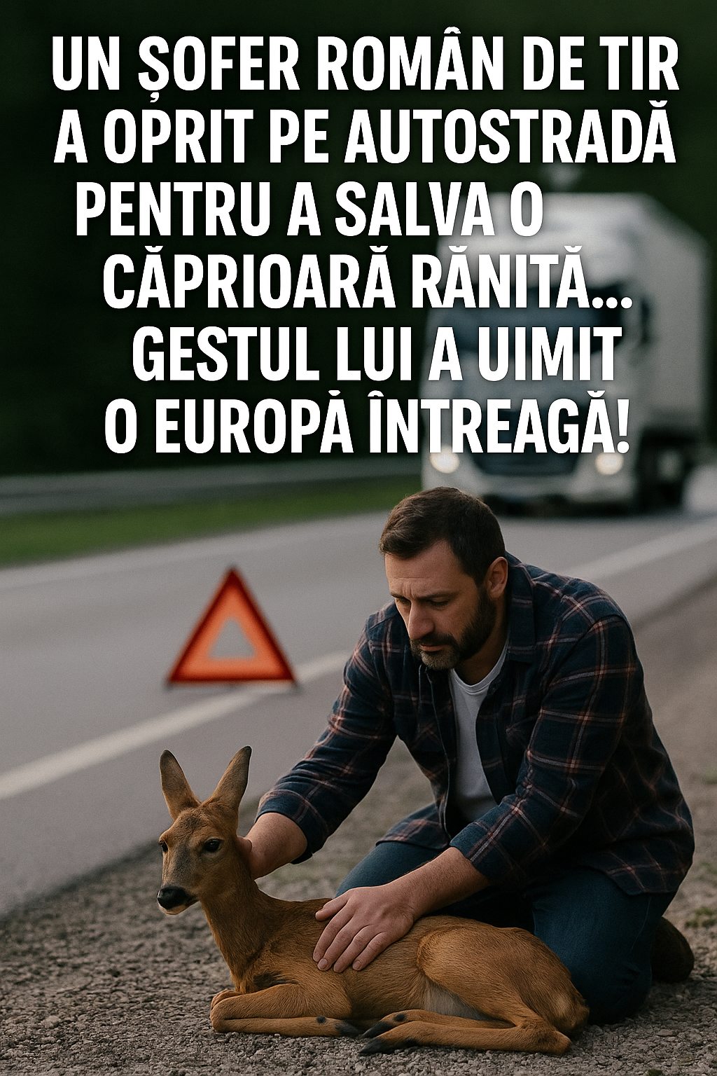Un șofer român de TIR a oprit pe autostradă pentru a salva o căprioară rănită Gestul lui a uimit o Europă întreagă
