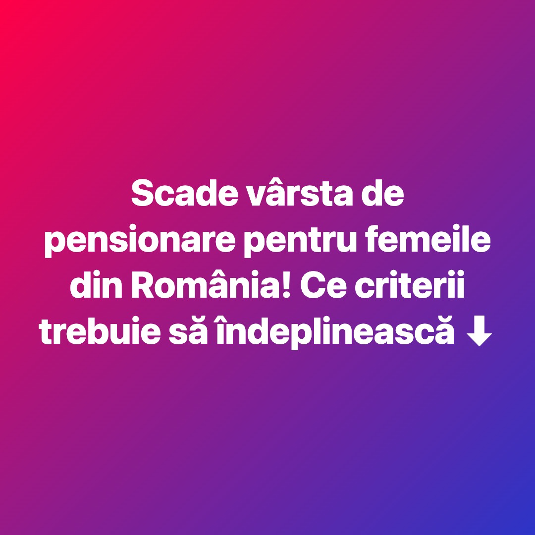 Scade vârsta de pensionare pentru o parte dintre femeile din România, în baza Legii nr. 360/2023. Măsura se aplică celor care au încheiat stagiul complet de cotizare și au crescut copiii până la 16 ani sau, când este vorba despre adopție, i-au îngrijit timp de cel puțin 13 ani. Pentru a beneficia, solicitarea se depune la Casa Națională de Pensii.