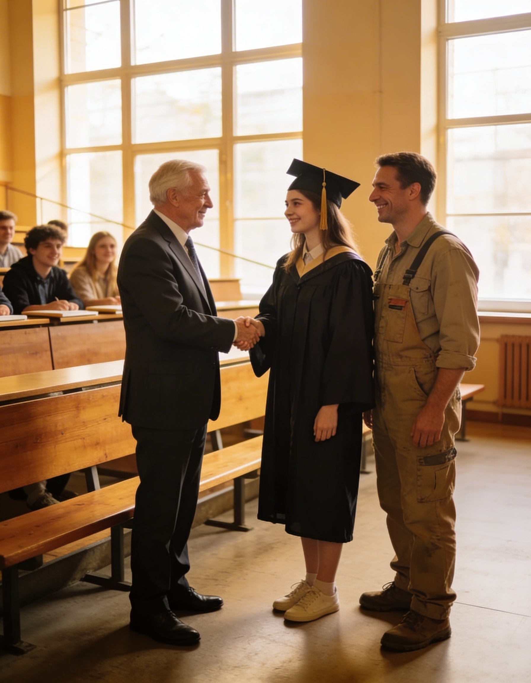 Mi-am lăsat diploma pe masă și am coborât treptele direct spre el. L-am îmbrățișat în fața tuturor.