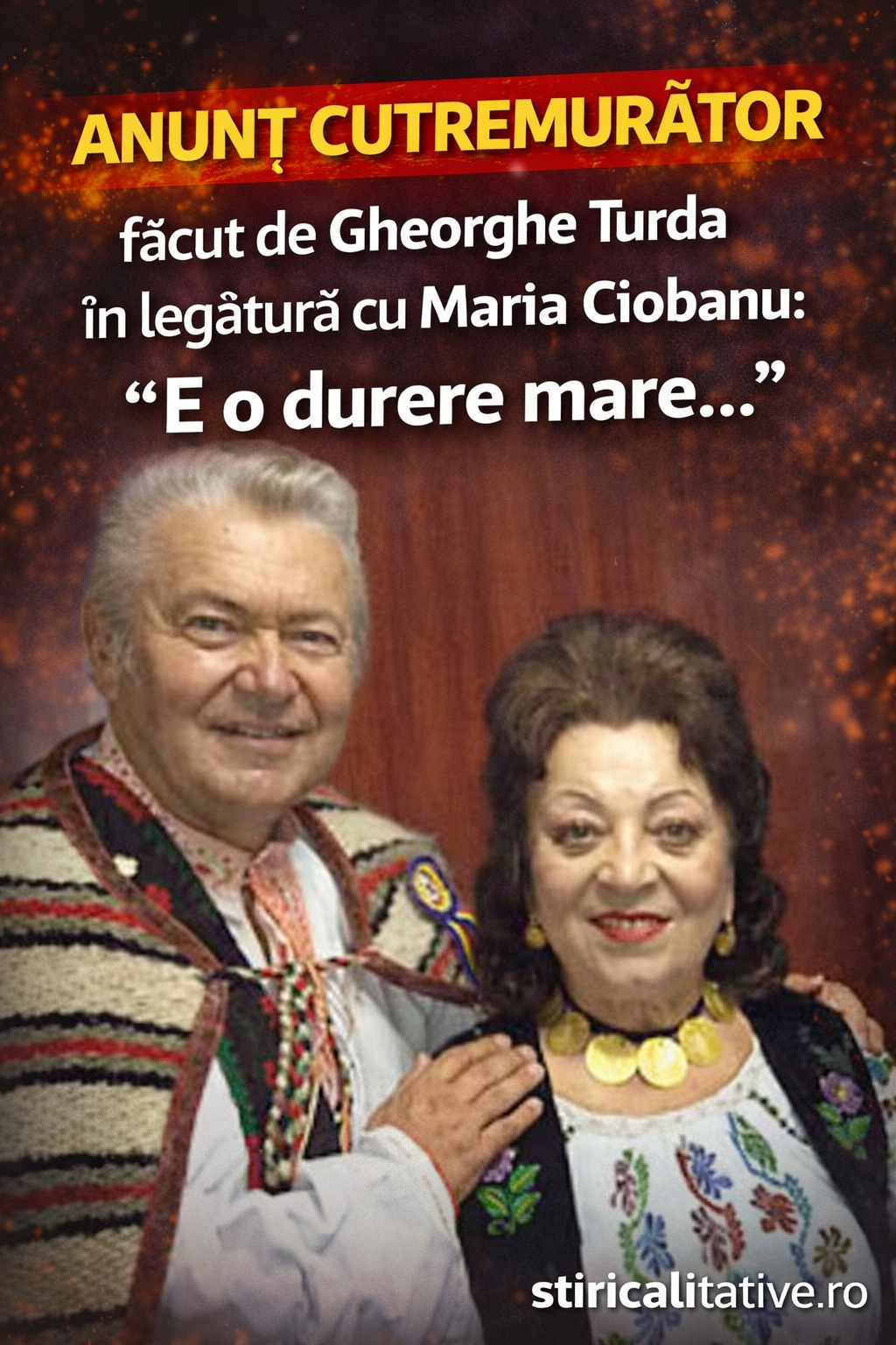 „I-am fost alături, am mers la înmormântare. E o durere mare. Maria a avut un soț care a iubit-o și a respectat-o foarte mult”, a spus Turda, cu vizibilă emoție.