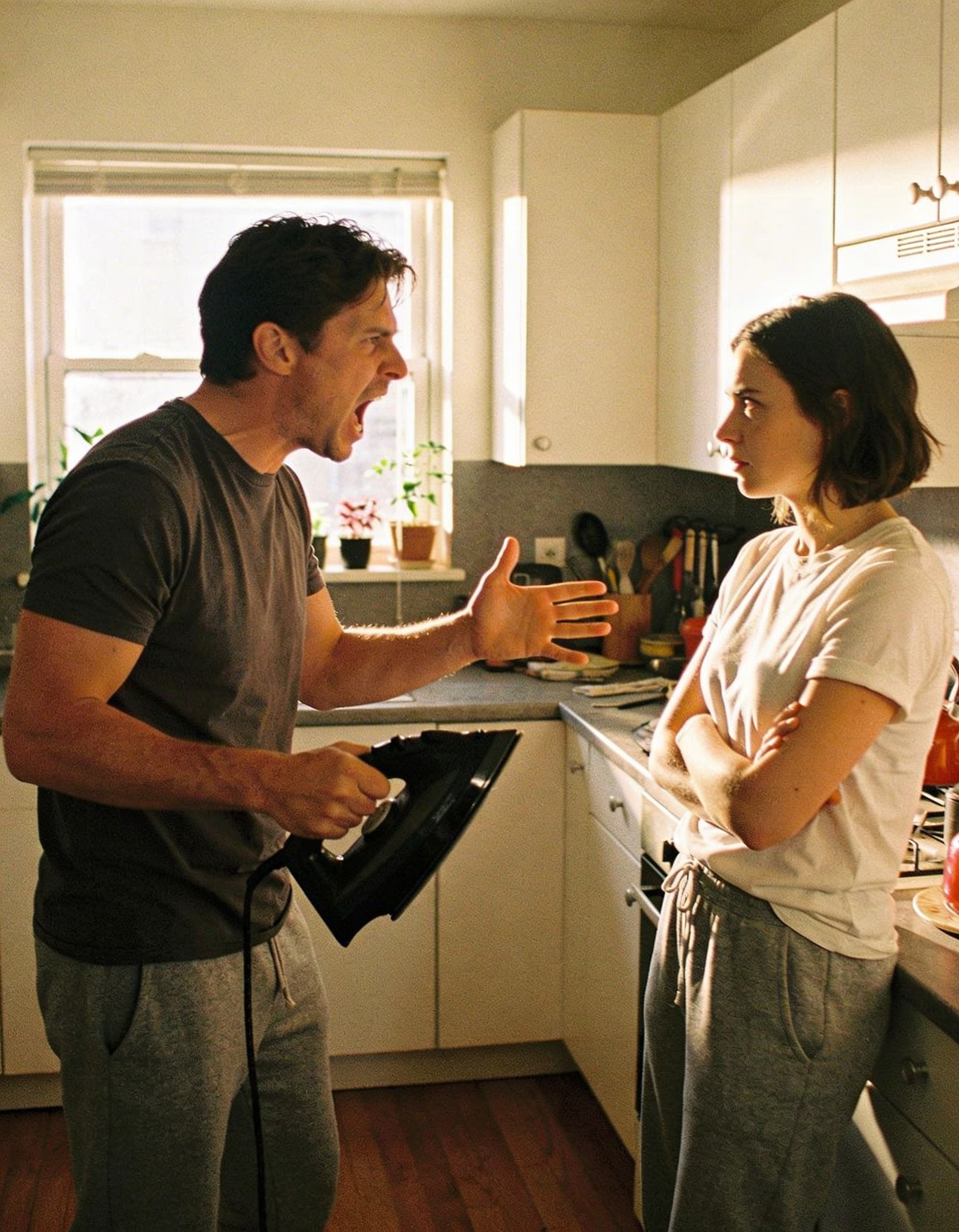 Țin un leneș pe cap a strigat bărbatul lovindu-mă cu fierul.